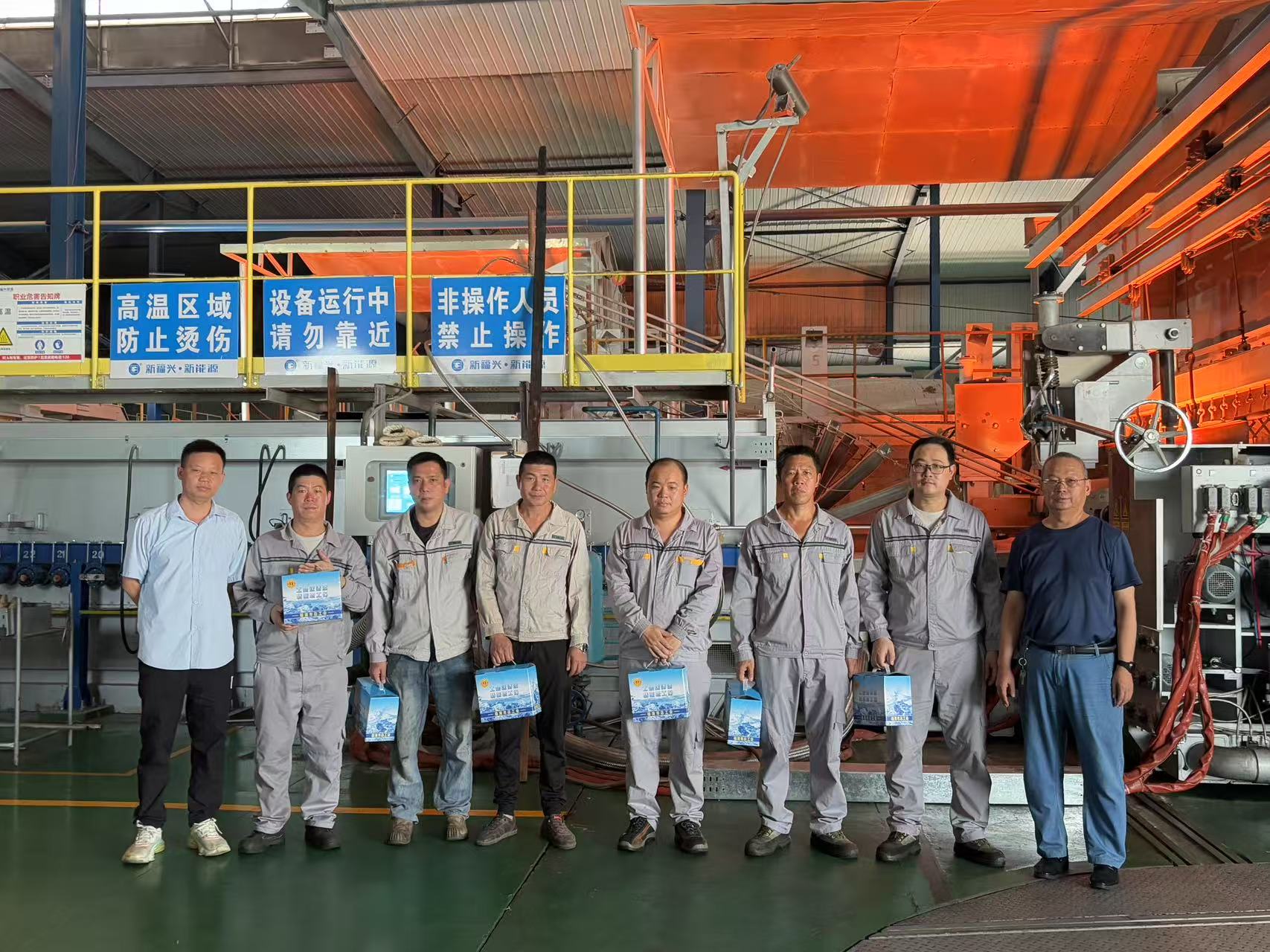 在集團(tuán)總部熔化車間里,機(jī)器轟鳴,熱浪滾滾,職工們正揮汗如雨地忙碌著。當(dāng)工會(huì)的慰問隊(duì)伍走進(jìn)車間時(shí),職工們的臉上露出了驚喜和感動(dòng)的笑容。一位熔化主操手師傅激動(dòng)地說:“這份物資是關(guān)懷,更是對(duì)我們工作的認(rèn)可,心里特別舒服!我們肯定守好崗、干好活,不辜負(fù)這份心意。”